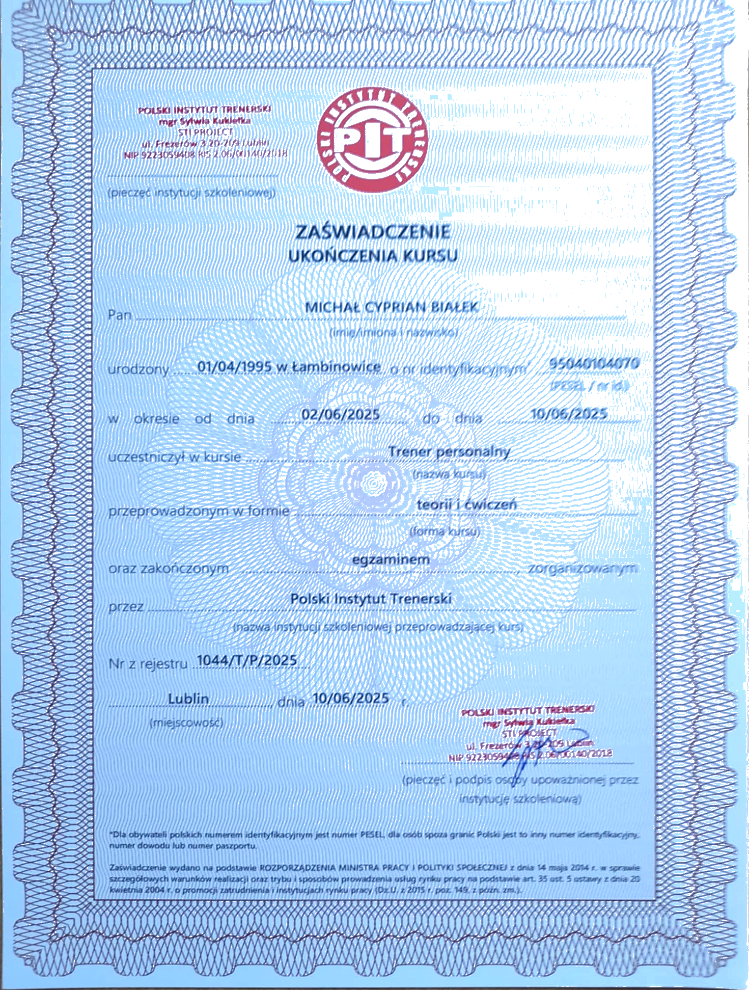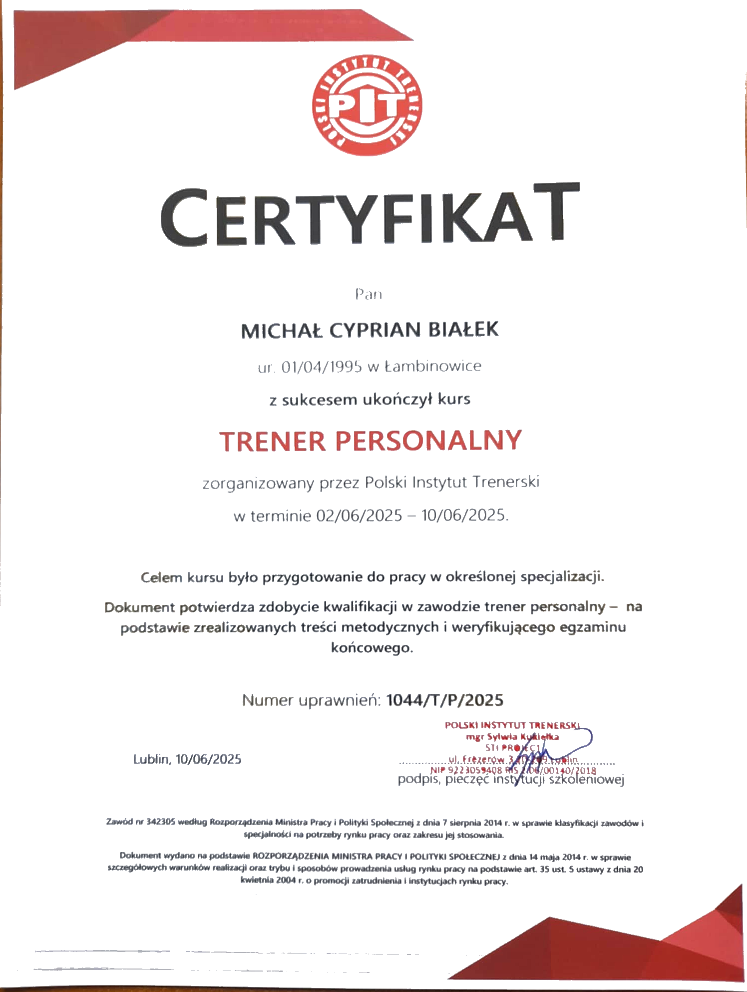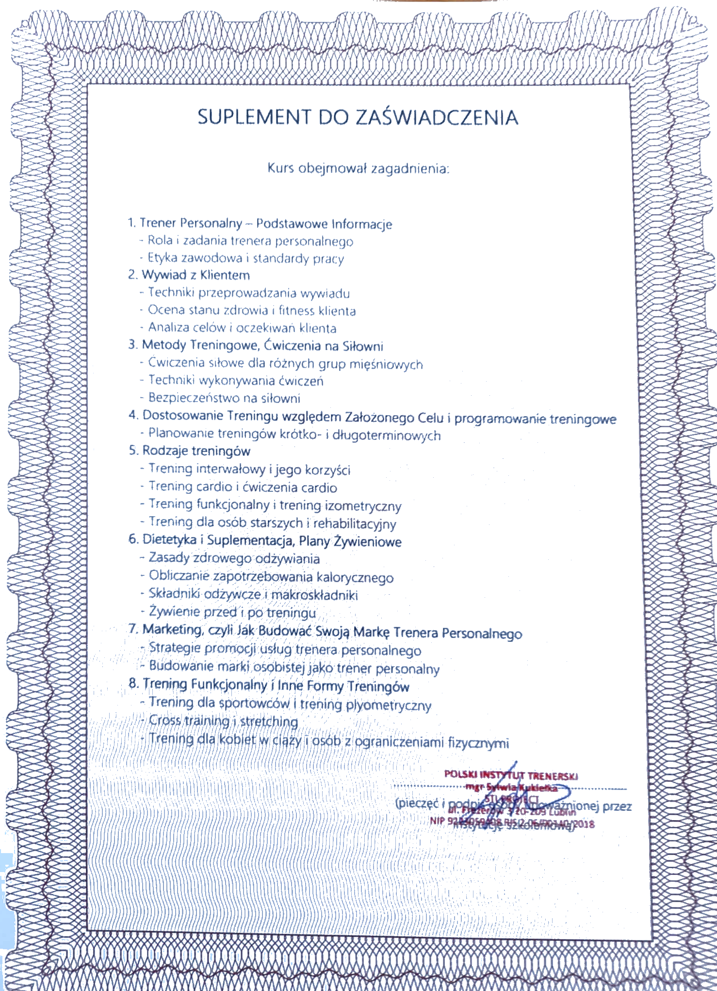 Certyfikat trenera personalnego